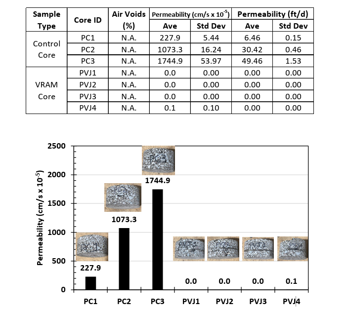 A 2022 study from the CAIT Institute at Rutgers University examined the permeability of field cores from the Pennsylvania Turnpike in the lab. Bennert et al. determined that the control cores were 24 times more permeable than the VRAM cores.