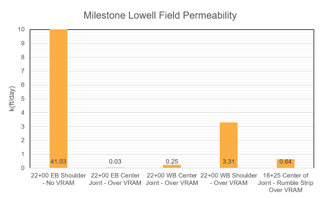 - Immediately after construction, field and lab tests showed that VRAM sections had zero vertical permeability, meaning water could not penetrate below the surface.