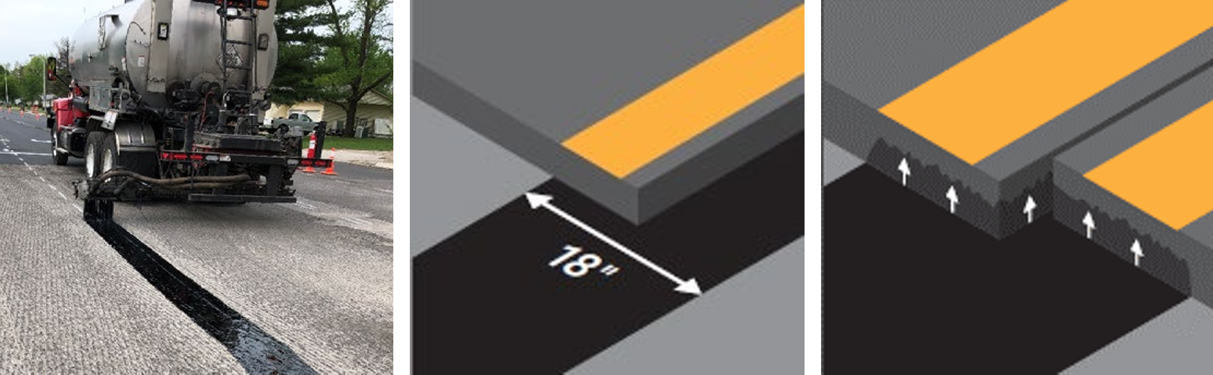 VRAM (Void Reducing Asphalt Membrane) is a polymer-modified asphalt used to extend the life of the longitudinal joint area, and by extension, the entire pavement. It is applied under the joint before surface course paving, where it migrates up to fill the interconnected air voids, sealing the joint area and making it nearly impermeable to water.